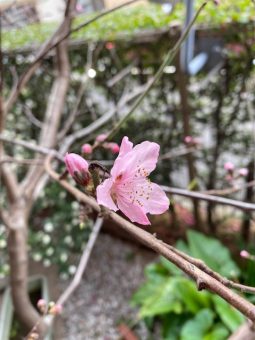 昨日、わが家の桃の木(照手水蜜という品種)に花が咲きました。