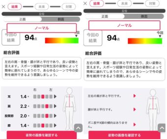 株式会社Sportipさんに姿勢分析をしてもらったのですが、結果の一部がこちら。