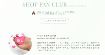 当院はツクツク!!!というECサイトに出店していますが、独自の面白い機能に「ファンクラブ」というのがあります。ツクツク!!!からどこか1店舗選ぶと、そこから毎月「おすそわけポイント」がもらえる機能です。