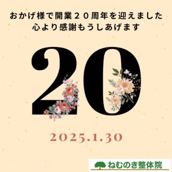 2005年1月末に市川市に当院をオープンし、おかげ様で本日で丸20年経ちました。